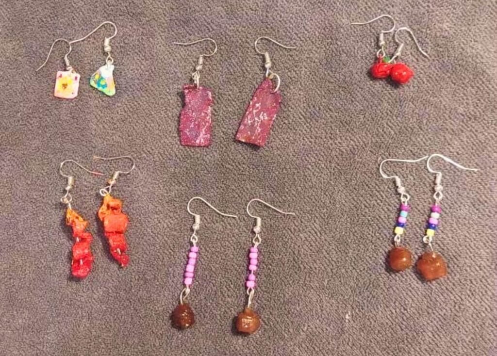 We had to work on SCOBY, which stands for “Symbiotic Culture of Bacteria and Yeast.” My group created SCOBY ACCESSORIES, including earrings, necklaces, and bracelets made from SCOBY sheets. On the exhibition day, we decorated our booth with our products and presented our findings in English to teachers, friends, and guests.